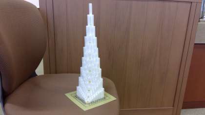 ところで、環先生は、九九を立体的に表したらどうなるのだろうと考え、実際に発泡スチロールを使って模型を作ってみたそうです。それが3枚目の写真です。