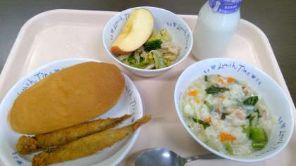 給食の牛乳当番の子どもたちから「校長先生、この頃、パントリーで牛乳の片付けの時に見かける。」なんて言われます。1階のパントリーに行く機会のない子どもたちは知らないかもしれませんね。実は、私、出張や来客等でいない場合は別ですが、基本的には、学校でいる時は、牛乳の片付けを手伝っています。なぜかと言うと、以前、この学校で教頭をしていた時も、時々、牛乳の片付けを手伝っていました。それに、約3年前に、この学校に赴任した時は、新型コロナウイルス感染拡大防止のため、給食委員さんに牛乳の片付けをしてもらうことができず、先生方だけで片付けをしなければなりませんでした。それなら、ということでお手伝いをし始めたわけです。一応、経験者ですし。そのうち、給食委員さんがしてくれるようになっても、お手伝いを可能な限りしています。だから、校長には担当の委員会はありませんが、あえて言うなら「私は、給食委員会です。」と大きな声で言いたいです。牛乳の片付けをしながら、給食委員さんとお話するのも、とても楽しいです。これだけ、手伝っていたら、給食のメニューで無理なお願いをしても(例:揚げパンを出す日を増やしてほしい、手作り蒸しパンを少し大きくしてほしい等)、多少は聞いてくれるかもなんて「よこしまな」気持ちは、あまりありませんので・・・。一応、お伝えしておきます。今日のリゾット、野菜たっぷりで、温かくて、とてもおいしかったです。