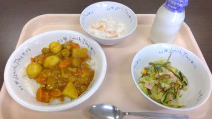今日は、「6松が給食番長になったカレー」です。つまり、6年松組さんがカレーの具を考えてくれて、それが給食になったメニューというわけです。ウインナーやウズラの卵が入っていましたね。隠し味もあったのかな?6松オリジナルカレーは、とてもおいしかったです。