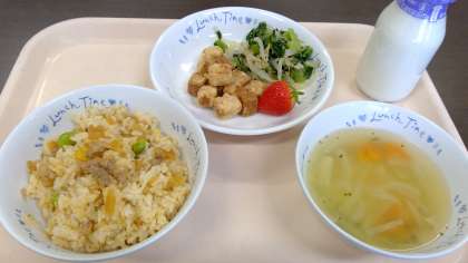 ○キムタクご飯 ○牛乳 ○高野豆腐の唐揚げ