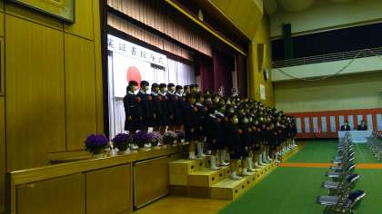令和4年度第135回卒業証書授与式です。75名の卒業生が堂々と入場してきました。そして、一人一人が「6年間で最高の返事」をし、素晴らしい態度で証書を受け取りました。この態度を見ただけで、私は涙があふれてきました。
