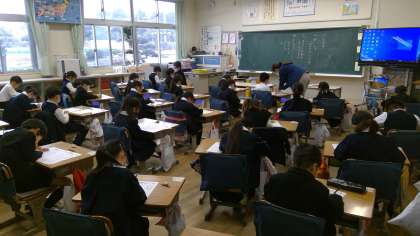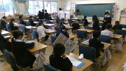 入学して1年。児童玄関から左右に分かれて入っていた教室とも、後2日でお別れです。