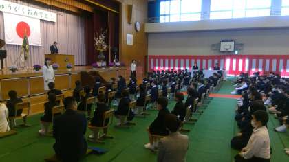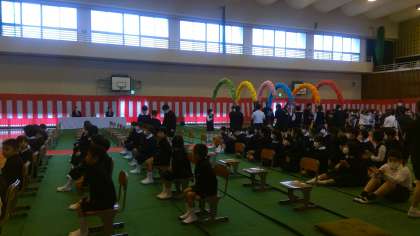 6年生に案内されながら、1年生が入場しました。その後、担任の発表と、一人一人名前を呼んで、55名の入学を許可しました。今日から詫間小学校の立派な1年生になりました。ご入学おめでとうございます!