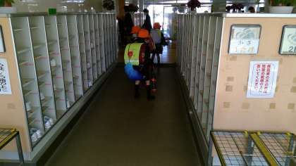 登校して自分の靴箱に下靴を入れ、上靴に履き替えて、それぞれの教室に行きます。一緒に登校して来たお兄さんやお姉さんが優しく教えている姿もたくさん見えました。