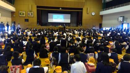 本日の5時間目、4年ぶりに全校児童が集まっての「交通安全教室」が開催されました。1年〜6年生までの児童が体育館に集まったのも久しぶりです。