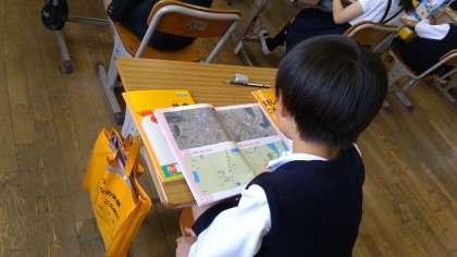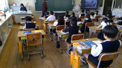 本日の1時間目。週のスタートは、社会科の授業です。3年生から始まった授業ですね。3年生は、市内のことを中心に勉強していきます。教科書には三豊市のことは掲載されていませんので、副読本「三豊のすがた」を使って勉強していきます。詫間小学校の周辺のことは、よく知っていると思いますが、三豊市は広いですから、海から山まで、いろいろな所があります。これから、少し視野を広げて三豊市全体のことを勉強していきます。