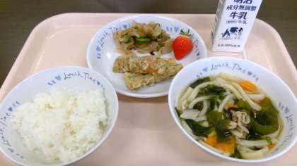 うどんが苦手な人も食べられる「本校のうどん」の日です。「薄味だからかな?」と栄養教諭。そう言えば、出汁が「うどん、うどん」していないと思います。竹輪の天ぷらとうどんって、何て相性がいいのでしょう。うどんの日って、ご飯が「麦ご飯」でないことに気付いてました?