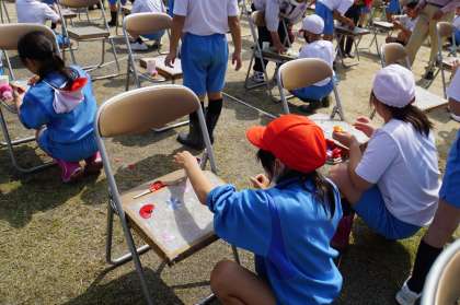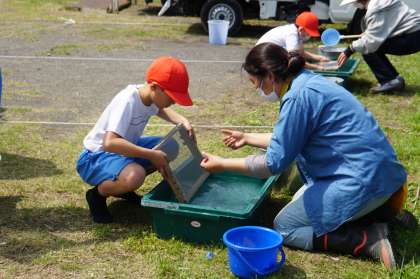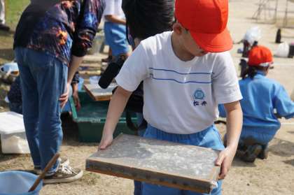 紙すきをして、そこに花びらで模様をつけていきます。4年生の皆さんは、真剣に取り組んで、なかなかの力作が出来上がりました。