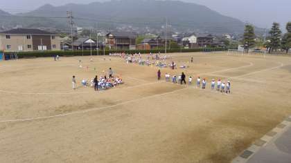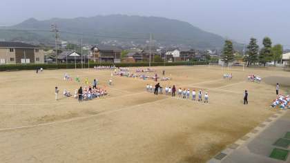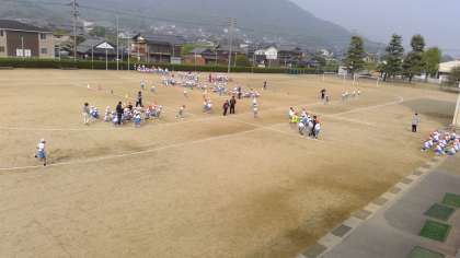 今週から体育集会が始まりました。色別リレーです。1、2年生は折り返しリレー。3、4年生は、小さいトラック、5.6年生は、大きなトラックです。みんな、がんばっています。