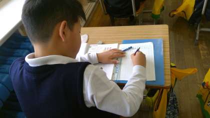 3年生になって、また一段と成長したようです。発表も上手にできていますし、ノートにもしっかり書きこんでいます。全員が授業に集中して取り組んでいます。わり算は、「1つ分?」と「いくつ分?」の2つがあります。さて、どんな問題ができるのでしょうか。