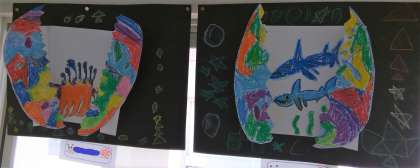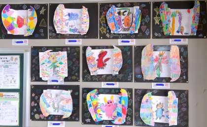 2年竹組教室に掲示している図工の作品です。どの作品なのかは、お子様に聞いてください。階段の踊り場に掲示している作品も、本日、アップしています。なお、5月3日の写真集もアップしますので、そちらもぜひご覧ください。