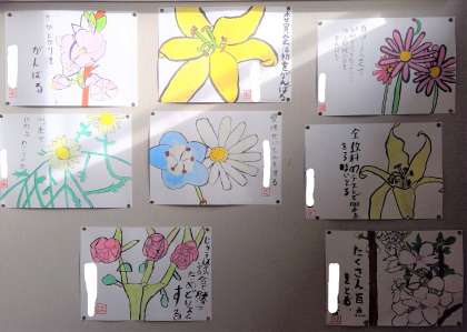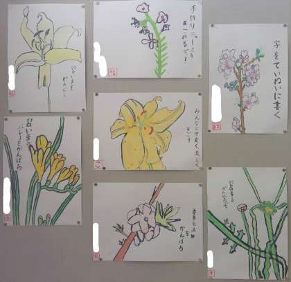 階段の踊り場に掲示している5年生の作品の続きです。