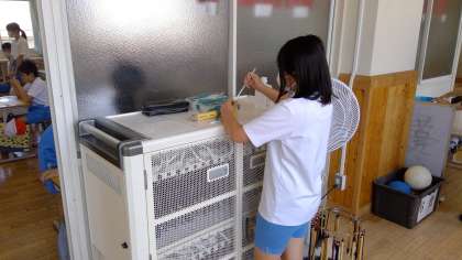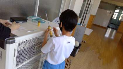 ペーパーテストが終わった後は、「気体採取器」の使い方の実技テストがありました。がんばりましたね。