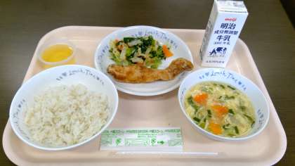 いつも「かきたま汁」を食べるたびに「どうやったら、卵がまるで湯葉のように仕上がるのだろう?」と思っています。卵が、線というか糸を引くというか、塊じゃなくて、筋になっているのですね。今度、調理員さんに教えてもらおうと思います。