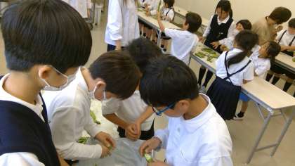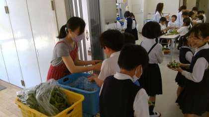 本日の昼休み。1階パントリーで、「そら豆のサヤ取り体験」がありました。50人を超える子どもたちが参加してくれました。思った以上に分厚いサヤをむくと、中から、いい形のそら豆が出てきます。