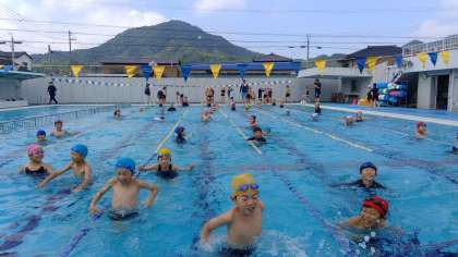 本校では、プール開きは学年ごとに行います。3年生が、今年のトップバッターです。元気いっぱいの3年生は、水の感触を味わっていました。3年生は、今年から深いプールの方で水泳学習を行います。