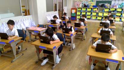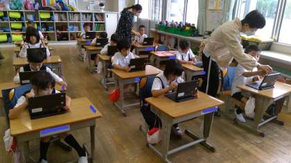 1年生は、木曜日の2時間目に松組、竹組が隔週で、MAiZU(マイズム)の方が来てくださり、タブレットを使って学習をしています。2回目でしたが、電源を入れるのも、お手のもの。戸惑うことなくどの子もすいすい進めていきます。キュビナを使って、国語の勉強をしました。とても楽しく取り組めました。