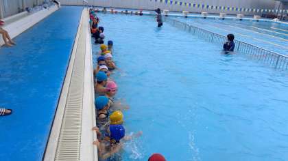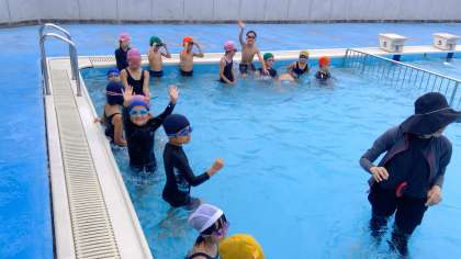 本日の3時間目。2年松組さんと2年竹組さんは、合同体育です。水泳です。気持ちよさそうです。