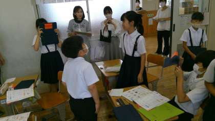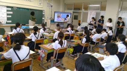 本日の5時間目。5年松組さんは、外国語の授業です。今日は、研究授業です。研究授業というのは、ごく簡単に言うと、教員が授業力を高めるために、授業を公開し、参加した教員で、良さや改善点を話し合うという教員研修の一つです。