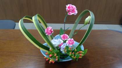 本日は、クラブ活動がありました。お花クラブから、いつものように生け花が届きました。