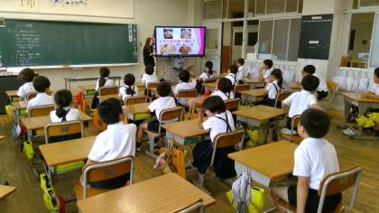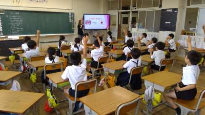 6月22日(木)に、国際交流員のコリーン先生が来てくださいました。各学級1時間ずつの短い時間でしたが、とても楽しく活動することができました。今回は、コリーン先生がイギリス出身ということで、イギリスの国のことや食べ物、スポーツ、学校のことなど、たくさんのことを教えていただきました。小学校での昼食がビュッフェ形式で、好きなものを選べるという話を聞いて、「イギリスに行きた〜い!」とうらやましそうに話している子どもたちがたくさんいました。ご家庭でも、お話を聞いてみてくださいね。