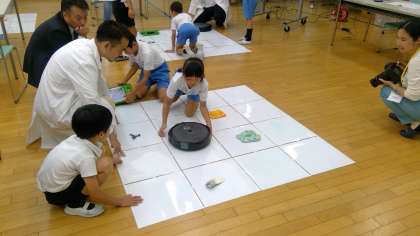 本日の1、2時間目。3年梅組さんは、アイロボット社員の出張授業の「プログラミング教室」を行っています。昨日の3年竹組さんと同じです。山下三豊市長様、大原教育長様も視察に来られました。テレビ局1社、新聞社2社も取材に来ていました。そんな中でも、3梅の皆さんは、普段と全く変わらず、元気にいきいきとプログラミングに取り組んでいました。