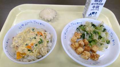 ○他人丼 ○牛乳 ○高野豆腐の唐揚げ