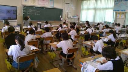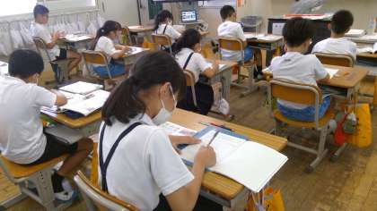 もう1学期も残り少なくなってきました。本日の1時間目。4年梅組さんは、社会科の授業です。今日は、「資源ごみや粗大ごみは、どのように再利用されるのか」ということをお勉強しています。例えば、ペットボトルは、まずペレットになって、服や再生ペットボトルに生まれ変わるということです。4梅の皆さんは、いろいろなことをよく知っていて、「コーヒーの缶は、スチール缶です。」とか、「3年生の時に、磁石につくのがスチールでアルミはつかないということを勉強しました。」などの発言が続いていました。