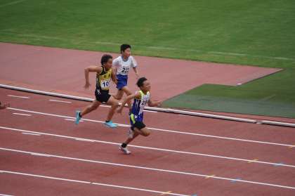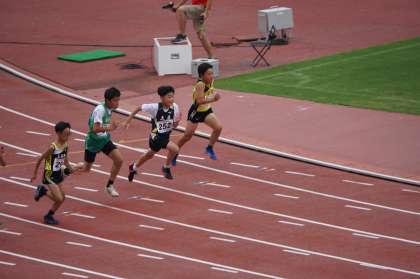 6年男子100m走の競技の様子です。