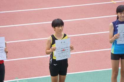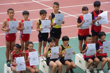 表彰式の様子です。おめでとうございます。出場した全部の選手の皆さん。蒸し暑い中よくがんばりました。一人一人のがんばりに大きな拍手を贈ります。