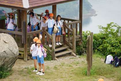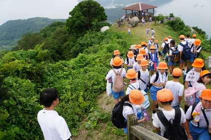 城ノ山の山頂です。絶景です。苦しい思いをして登ったので達成感もすごくありました。子どもたちも満足そうな表情をしていました。
