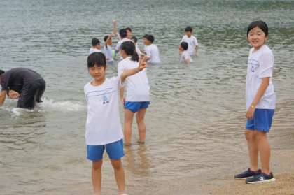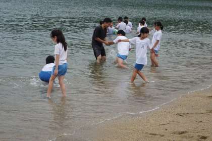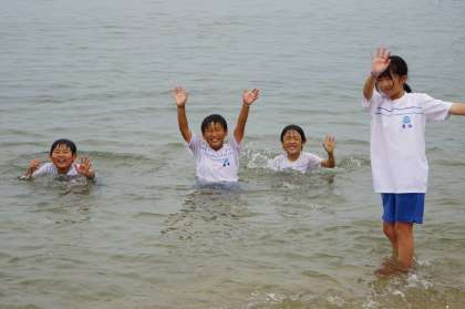 お弁当も終わり、「浜遊び」というか「海の中遊び」というか、思い切り夏の粟島を楽しんでいます。