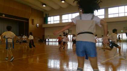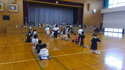 いよいよ最後のプログラム、体育館でのレクレーションが始まりました。楽しかった宿泊学習も終わりに近づいています。