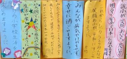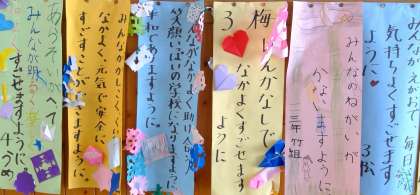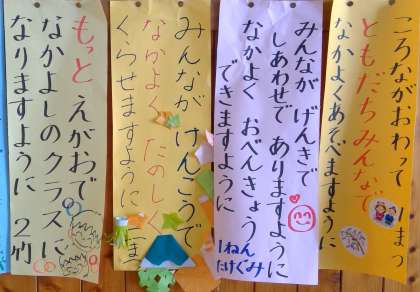 一つ一つをじっくり読んでみますと、どのクラスも「いい願い事」が書かれていると思いました。皆さんは、どのクラスの「願い事」が素敵だと思いましたか?