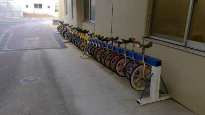一輪車の整備をしました。と言っても空気を入れたり、ネジを締めたりするだけですが。簡単な修理や整備は私がやって、私では無理なものは、専門家にお願いしています。本校の児童は、結構、一輪車で遊んでくれますので、整備のやりがいもあります。