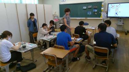 若い教員を対象にした校内での研修が、本日の午前中に行われています。講師を務めるのは本校のベテラン教員です。本日は、「運動会のダンス指導」と「図工の実技指導」についてです。若い教員も熱心に研修していますが、講師のベテラン教員もがんばっています。