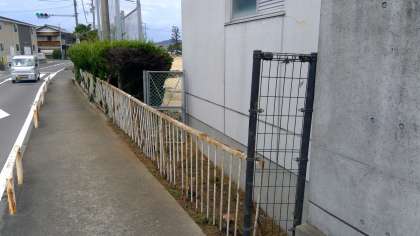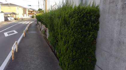 南側のカイズカイブキの生け垣ですが、プールの横の所は思い切って撤去しました。運動場の所までもと思いましたが、道路にボールが出たらいけないので、そこは残すことにしました。写真は、上がビフォー、下がアフターです。