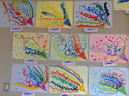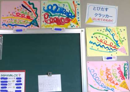 1年松組教室に掲示している図工の作品です。どの作品なのかはお子様にお聞きください。なお、この写真は後ほど「9月4日の写真集」にもアップします。そちらもご覧ください。