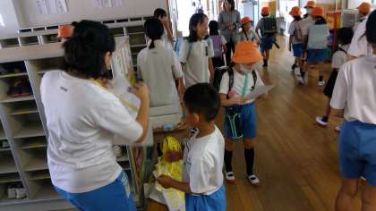 今日も「あいさつビンゴカード」の取組を行っています。○○先生を見つけるのが大変そうですが、スタンプラリーみたいで楽しそうです。児童会役員さん、生活委員さんが、がんばっています。
