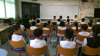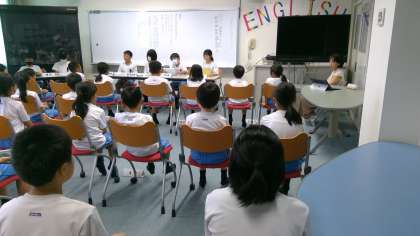 私がこの学校に赴任して初めての「代表委員会(代表委員会議)」が開催されました。今日の議題は「運動会を成功させよう!」です。児童会役員から運動会のテーマが提案されました。各学級の学級委員が集まっています。運動会のテーマ案について話し合い、テーマは「光り輝く最高の笑顔を仲間と共に!」に決定しました。