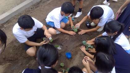 9月20日(水)の1校時と2校時に則久先生のご指導のもと、苗植え体験を行いました。苗を植えるときにも種まきの時と同様に土を固めることがポイントだと学びました。実際に体験するって本当に大切だなと感じました。