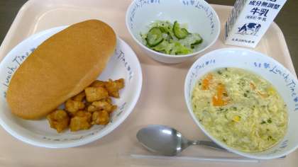 ○米粉パン ○牛乳 ○鶏肉のレモン酢