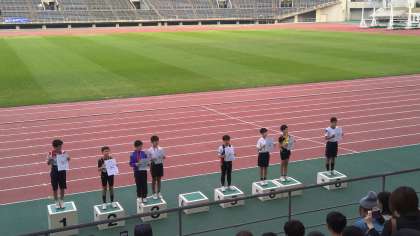 男子走高跳びの表彰式の様子です。おめでとうございます。