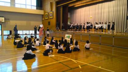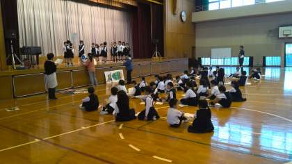 本日の2時間目。1年生は、合同で「学習発表会」の練習をしています。4年ぶりの学習発表会。そして、1年生は、初めての発表会ということで、練習にも熱が入っています。本番が楽しみです。