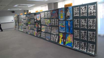 詫間町の文化祭が、マリンウェーブで開催されています。私も、お昼頃に見に行きました。ちょうどお昼時だったのか、作品展にはあまり見に来られている方はいなかったので、じっくりと作品の鑑賞ができました。以前は、全員の作品を展示していましたが、昨年度から、設置場所の関係で学年で15〜16人くらいの作品しか展示できていません。申しわけありません。なお、作品展は、今日は17時まで、明日は9:00〜15:00まで行っています。