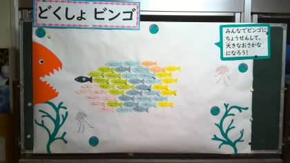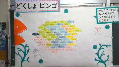 「大きな魚に食べられちゃう。」と心配していましたが、小さな魚(一人の読書ビンゴカード)が集まって、どうやら大きな魚になっているようです。(上の写真が前 下の写真が今日)