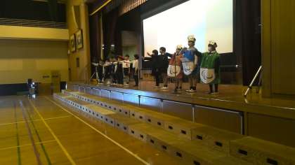 本日の4時間目。3年生は合同で学習発表会の練習をしています。国語の「パラリンピックについて調べよう」の単元や総合的な学習の時間での手話のお勉強などを発表するようです。本番が楽しみですね。欠席者が多いクラスもありますが、まだ1週間ありますから、早く元気になって学習発表会当日は活躍してほしいです。