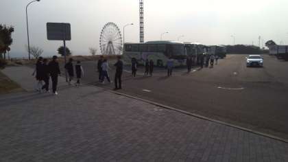 淡路サービスエリアで休憩し、これから本州に入ります。車酔いしている子は1人もいません。体調が悪くなった子も1人もいません。全員元気です。