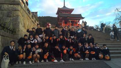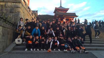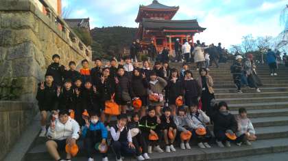 1日目の最後の見学地「清水寺」でクラスの集合写真を撮りました。もう、夕暮れが近づいています。