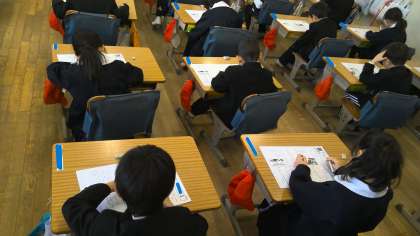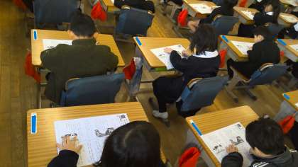 本日の2時間目。1年竹組さんは、国語の授業です。教室の背面黒板の所には「2年生まであと49日」と書かれたボードが立てられていました。入学して9か月以上が過ぎましたね。今日は、まとめのテストに取り組んでいます。自分で問題を読んで、しっかり考えて答えを書いている姿を見て、立派な2年生になれるだろうなあと感じました。もうすぐ1年生も「計算の校長テスト」が始まります。今日、2年生は「九九の校長テスト」を全員が合格し金メダルシールを渡しました。1年生の皆さんなら大丈夫と、今日のテストをしている様子を見て思いました。
